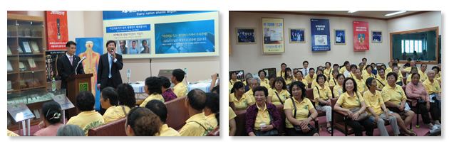 在大田總部的接見大廳,李相福會(huì)長(zhǎng)對(duì)訪問團(tuán)表示熱烈的歡迎。他特別感謝中國(guó)優(yōu)秀美健事業(yè)者和優(yōu)秀美健顧客對(duì)中國(guó)美健做出的巨大貢獻(xiàn)。在觀看了美健宣傳影像后,全體訪問者受到了極大的鼓舞和教育。中午,訪問團(tuán)與李相福會(huì)長(zhǎng)共進(jìn)豐盛的午餐。