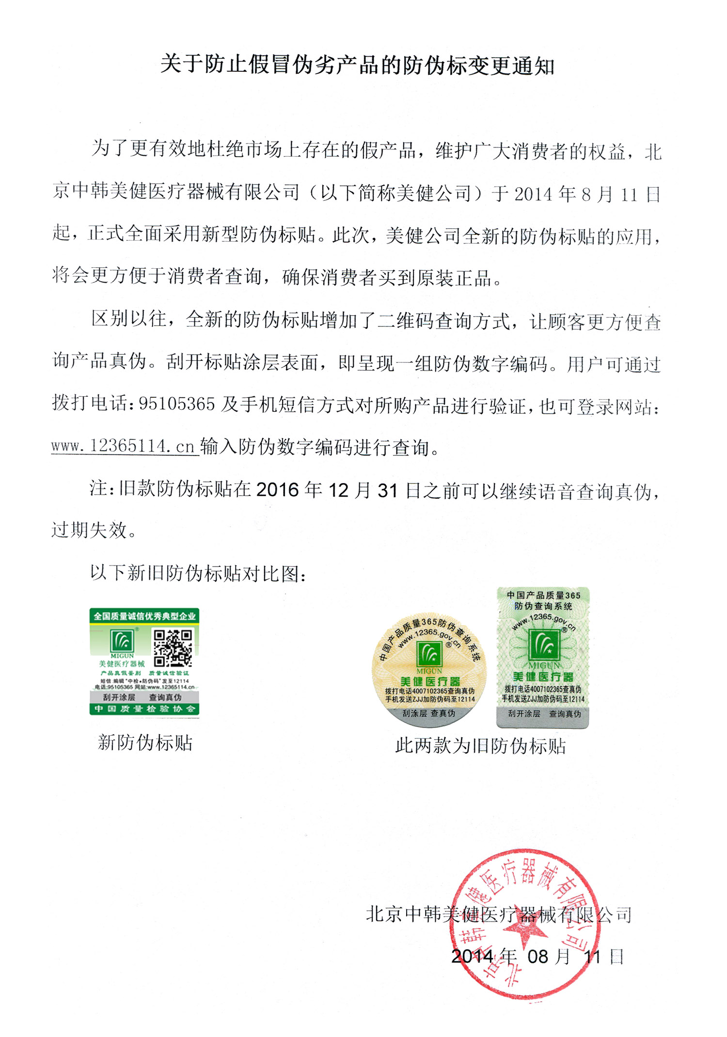 關(guān)于防止假冒偽劣產(chǎn)品的防偽標(biāo)變更通知