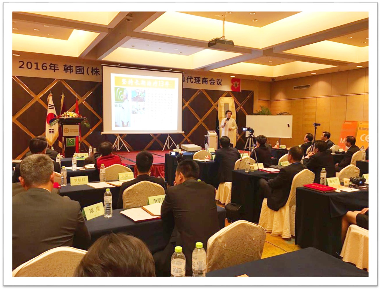 本次會議特邀請韓國美健總部的李栽和副會長參加并致辭,李栽和副會長勉勵所有的美健總代理商“韓國和中國是一衣帶水的友好鄰邦,更是親如家人的利益共同體,所以不能把美健區(qū)分稱「中國美健」或「韓國美健」,而是融為一體,變成「中韓美健」或「韓中美健」,雖然美健誕生在韓國,但要扎根在中國,發(fā)展在中國,要為全中國人民的健康事業(yè)奉獻(xiàn)一份力量!”