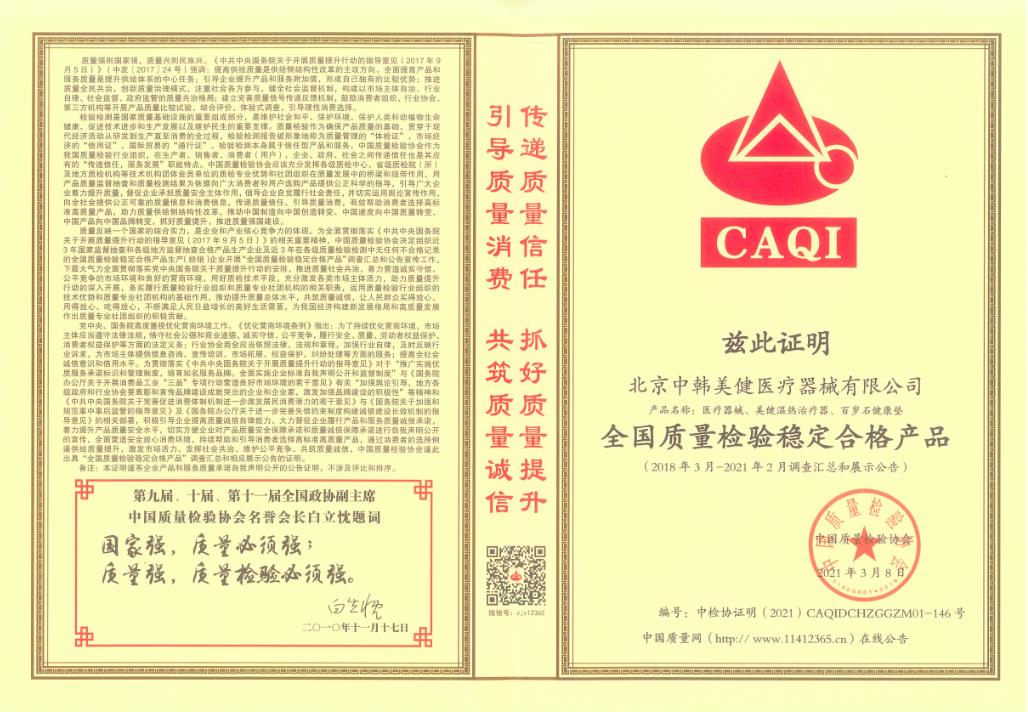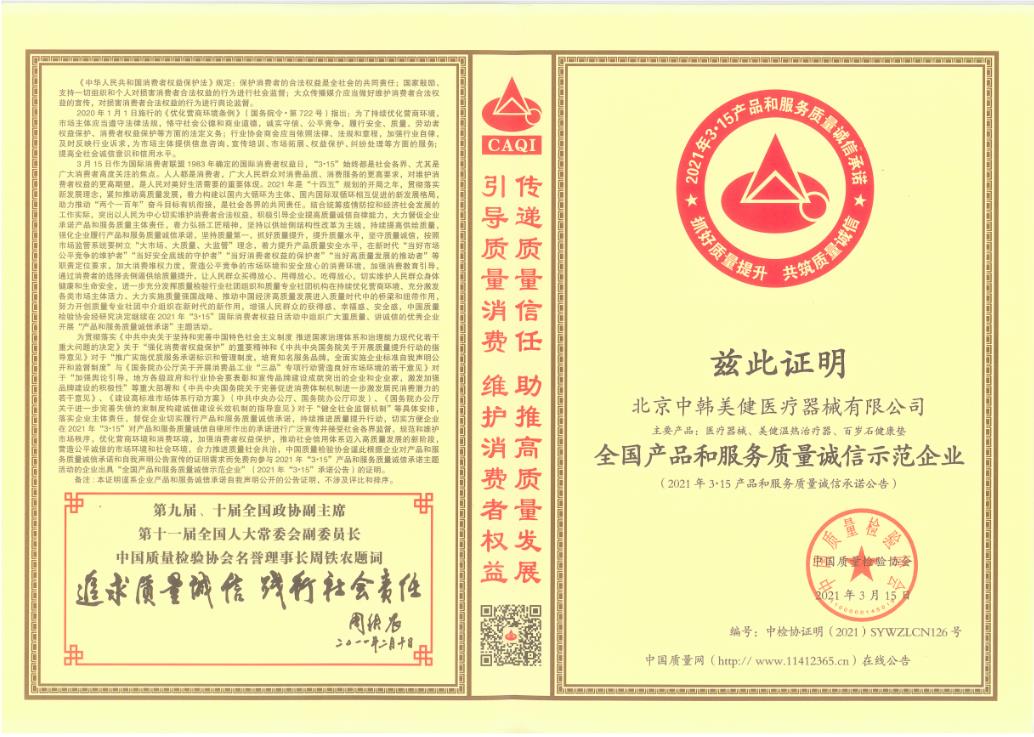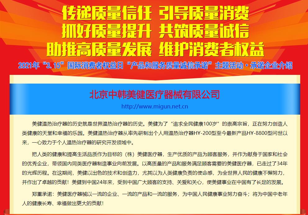 美健醫(yī)療器連續(xù)十二年獲得“3.15”認(rèn)證
